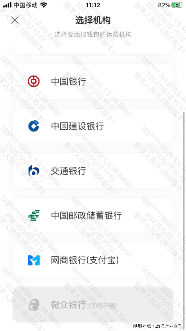 5月12日消息,数字人民币APP于近日进行更新,页面显示,钱包运营机构中的“网商银行(支付宝)”已呈现可用状态,腾讯旗下微众银行(微信支付)关联方按钮呈现阴影状态,显示“即将开通”,微众银行或将很快正式成为数字人民币试点银行。