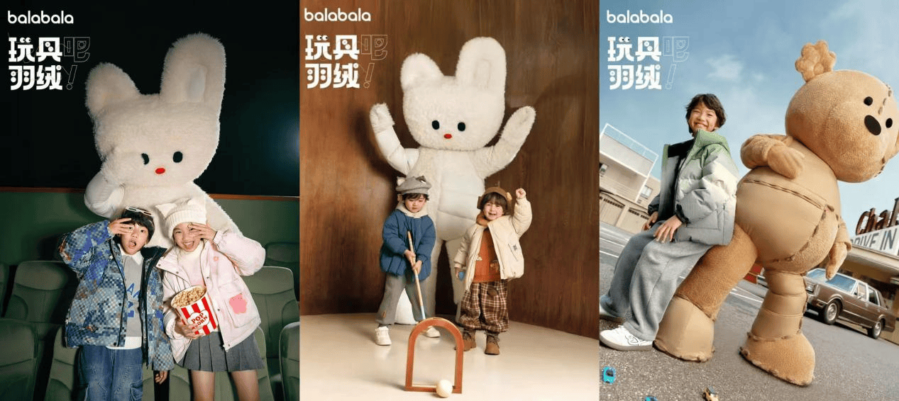 当传统的童装品牌仍在羽绒服的含绒量、防风技术上展开竞争时,巴拉巴拉已将目光投向更具深度的情感维度。在巴拉巴拉看来,童装不应只是功能与数据的比拼,而应回归到读懂孩子与理解父母的本质。“给小朋友一件羽绒,给大朋友留个玩具”——这句简单却深刻的品牌洞察,精准捕捉了当代家庭对高质量陪伴的渴望。