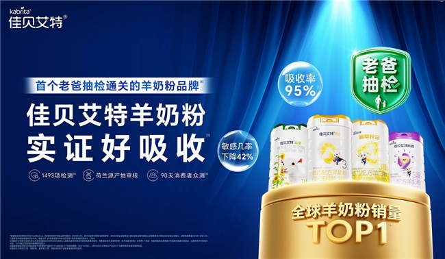近日,佳贝艾特还以卓越品质顺利通过专业评测大V“老爸评测”1493项严苛检测。“老爸评测”作为国内知名的第三方评测平台,检测范围涵盖成分、安全指标、工艺标准等多个维度。2024年,老爸抽检整体通过率仅6%,而佳贝艾特这次包含营养指标、农残、兽残、风险物质等一系列指标在内的抽检结果显示,1493项检测项目全部通关,成为行业首个且目前唯一获得“老爸抽检”认可标识的羊奶粉品牌。